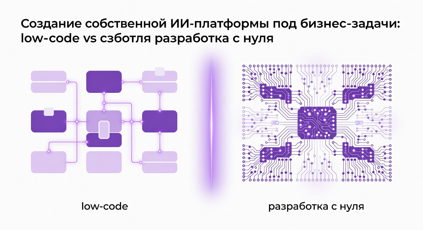 Сравнение low-code и разработки собственной ИИ-платформы под бизнес-задачи. Разбираем преимущества, риски, стоимость и выбираем оптимальный подход для вашего бизнеса в 2025 году.